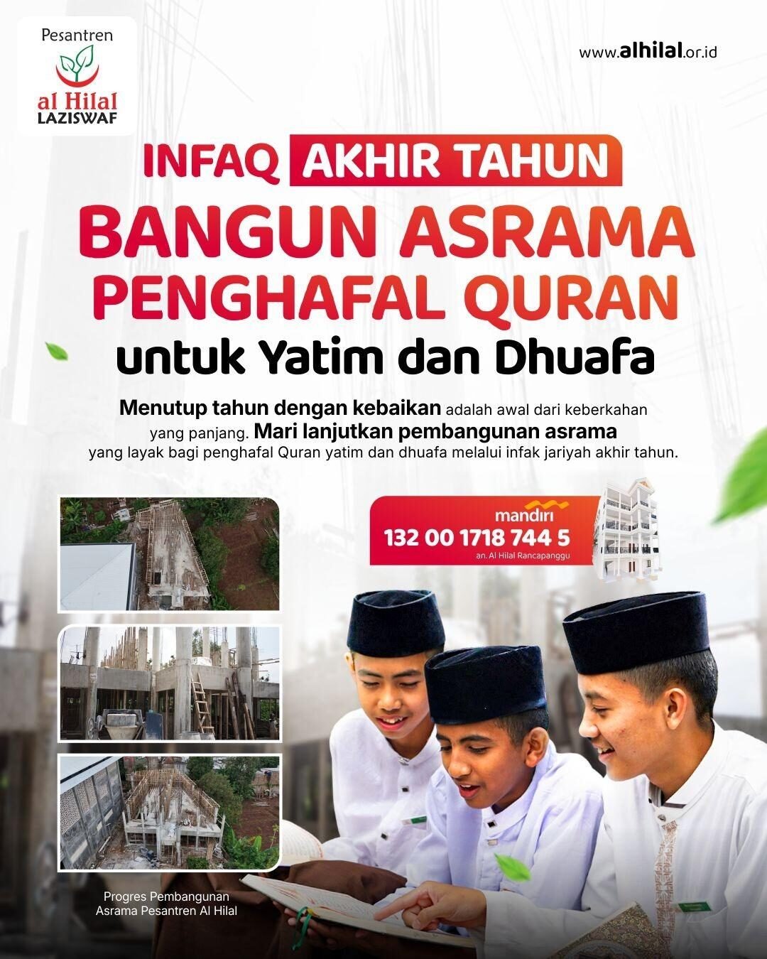 Pembangunan Masjid Pesantren Al Hilal di Jalan Manisi, Cibiru, Bandung terancang untuk menampung sekitar 1.000 jamaah dan menjadi pusat ibadah serta kegiatan keagamaan bagi santri yatim.